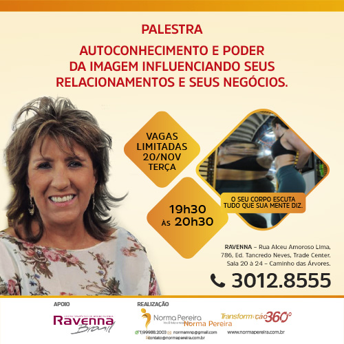 Ravena Rua Alceu Amoroso Lima, 786 - Ed. Tancredo Neves Trade Center - Salas 20 a 24 - Caminho das Árvores, Salvador, Bahia, BrasilWorkshop – Autoconhecimento e poder da imagem influenciando seus relacionamentos e seus negócios
